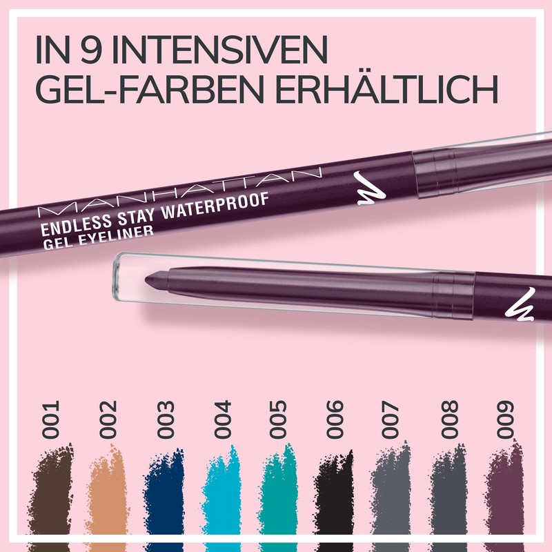 - Box contents: 1 x Manhattan Endless Stay waterproof gel eyeliner in the colour Ripe Plum - 2.6 g / water and smudge-proof, in purple, without sharpening / especially suitable for green eyes