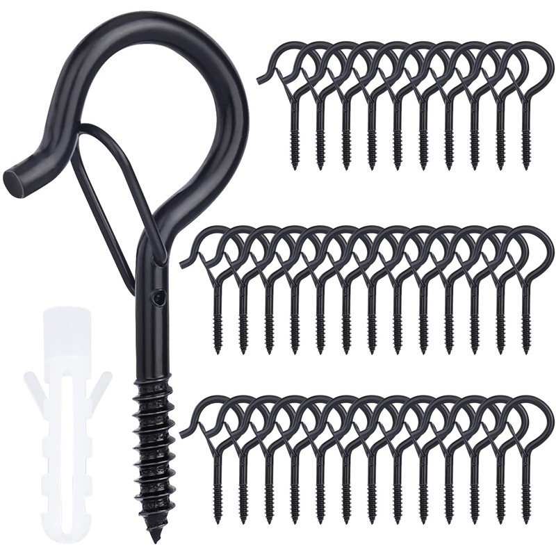 MANICAF Pack of 36 Screw Hooks, Black, Hooks for Screwing Hooks, Ceiling Hooks, Heavy Duty with Safety Buckle, Used for Plant Baskets, Bird Feeders, Wind Chimes, Fairy Lights