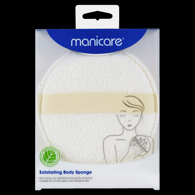 Manicare Exfoliating Body Sponge is a reusable, multi-purpose, dual-textured body exfoliating product made with environmentally conscious materials to support your skin health with the planet in mind. Made using sustainably sourced material, this exfoliating body sponge gently cleans and exfoliates skin to remove dirt and dead skin to keep it smooth, clear, and with a healthy glow. One side of the body sponge is made using certified recycled polyester, designed for exfoliating, while the other side is made with organic cotton yarn that is free from dyes, designed for gentle cleansing. What are the benefits and features of Manicare Exfoliating Body Sponge? Reusable, multi-purpose, dual-textured body exfoliating product. Made with environmentally conscious materials to support your skin health with the planet in mind. Gently cleans and exfoliates skin to remove dirt and dead skin to keep it smooth, clear, and with a healthy glow. One side of the body sponge is made using certified recycled polyester, designed for exfoliating. The other side of the body sponge is made with organic cotton yarn that is free from dyes, designed for gentle cleansing. Who is Manicare Exfoliating Body Sponge for? This exfoliating body sponge is suitable for all skin types, even sensitive skin, and is perfect for those who want to keep their skin smooth, clear, and with a healthy glow while being environmentally conscious.