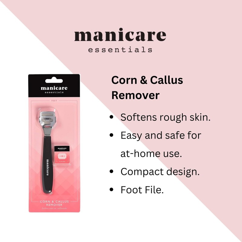 Manicare Manicare Corn And Callus Remover, Pedicure Tool For Safely Removing Corns, Calluses, Dead, Dry Hard Skin, Includes 10 Replacement Heads, Foot And Heel Scrubber Scraper, Corn Plane, Footcare