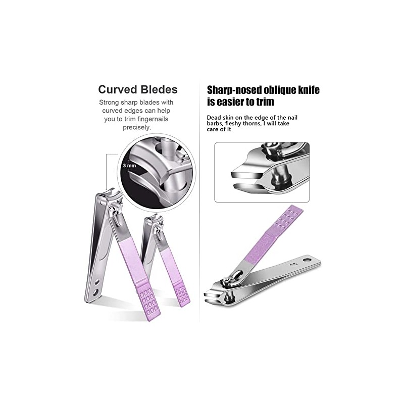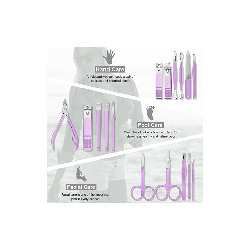 Manicura Set 16 en 1 manicure kit acero inoxidable manicura y pedicura, conjunto de uñas de acero inoxidable, conjunto profesional de corte de uñas de belleza (Púrpura)