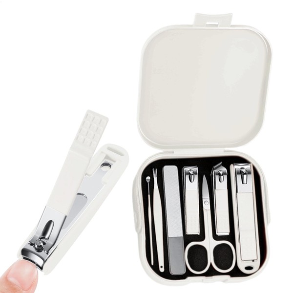 - Perfect Nail Care Set: This multifunctional travel manicure kit is the ideal addition for every grooming need. Featuring oblique and flat nail clippers, glass nail file, eyebrow scissors, dead skin pusher, ear spoon, anti-splash nail clippers, and more, you'll have all the effective tools for manicure and pedicure