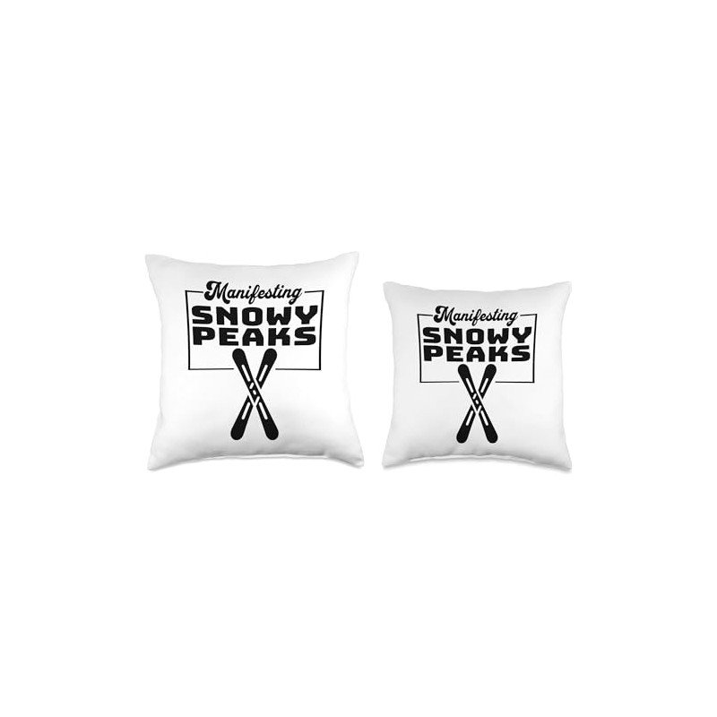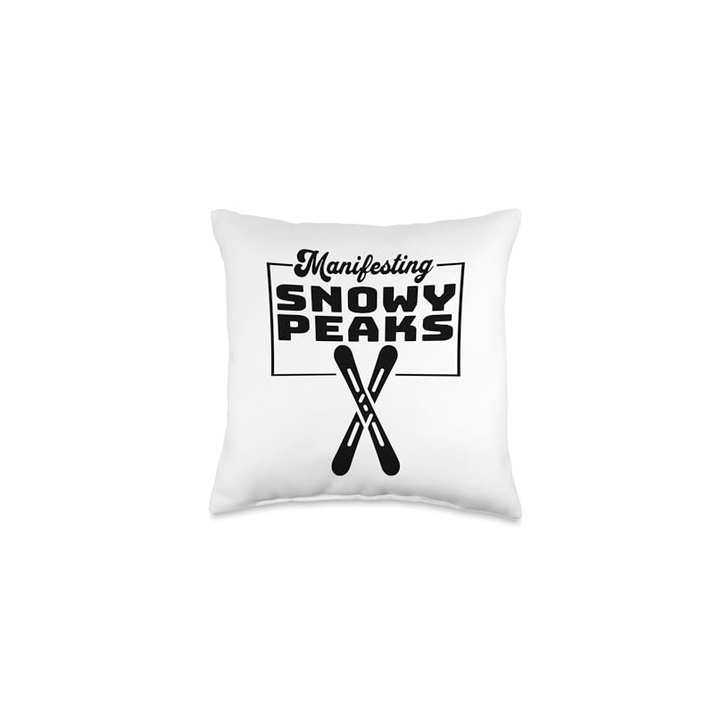 Manifesting Snowy Peaks Skiing Themed Throw Pillow