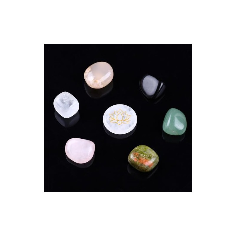 Manifestion Kits: 7 Crystals for Inner Peace & Harmony - Worry Stone, Green Aventurine, Unakite, Flower Agate, Rose Quartz, Clear Quartz, & Black Obsidian Stone Collection, Cognitive Wellness Gift Set