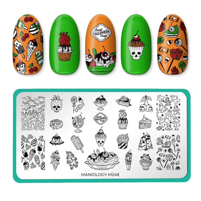 - Dare to take a bite out of these deadly sweets? Our Halloween Treats (M248) stamping plate is oozing with gore-geous nail designs for your final course. Scoop up a serving of bone-chilling ice creams and pile on the decadent desserts. These luscious treats are made extra special for finger-licking good manicures.