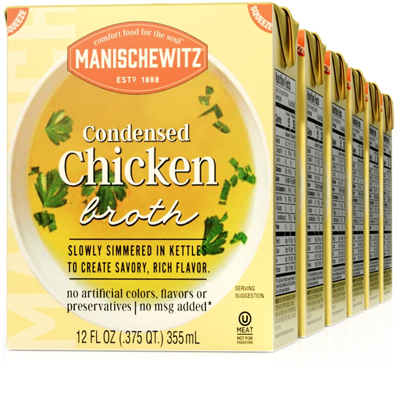 Manischewitz Condensed Chicken Broth 12oz (6 Pack), Flavorful, Kettle Cooked, Slowly Simmered