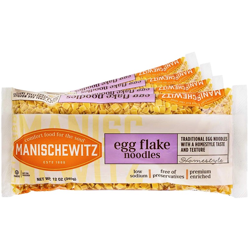 Manischewitz Egg Flakes Premium Enriched Egg Noodles 12oz (Pack of 4) Square Shaped Farfel