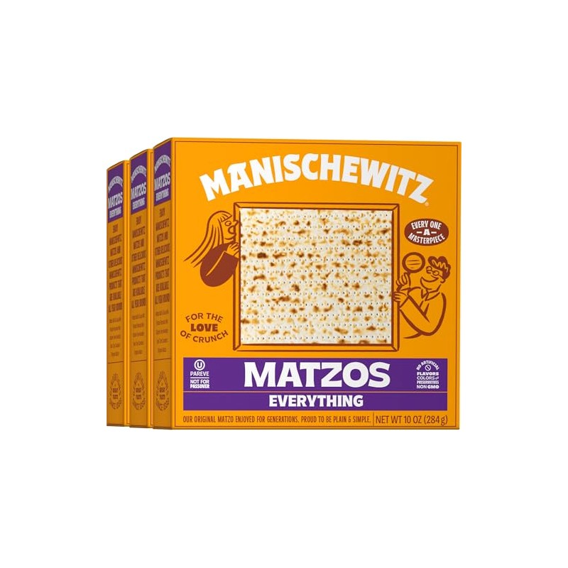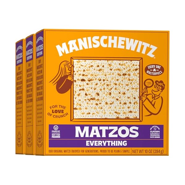 Manischewitz Everything Matzo 10 oz (3 Pack) | Thin & Crispy | Simple & Delicious Ingredients | Kosher | NOT For Pasover