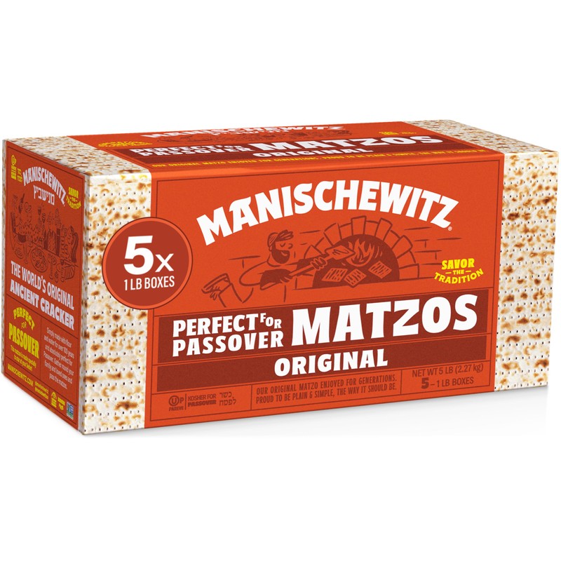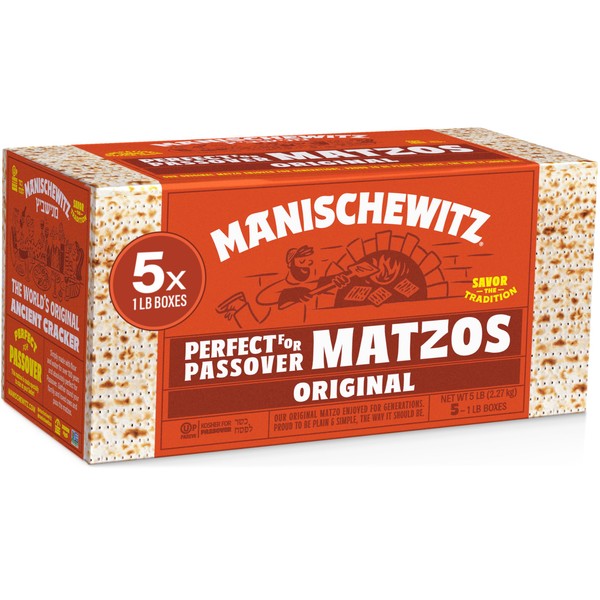 Manischewitz Passover Matzo, 5x1lbs Boxes (Total 5 Boxes) Freshly Baked for Passover 2026 | Just 2 Ingredients | Airy, Thin, Crisp & Delicious!