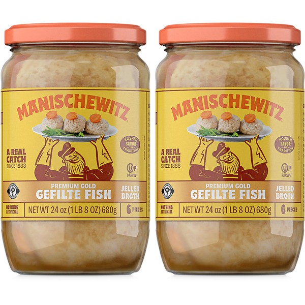 Manischewitz Premium Gold Gefilte Fish with Carrots 24oz (2 Pack), Kosher for Passover