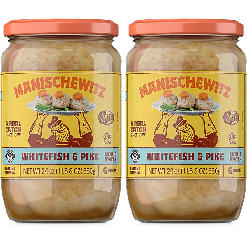 Manischewitz Whitefish & Pike Gefilte Fish in Liquid Broth 24oz (2 Pack), All Natural, Packed with Protein, No Added MSG, Kosher for Passover
