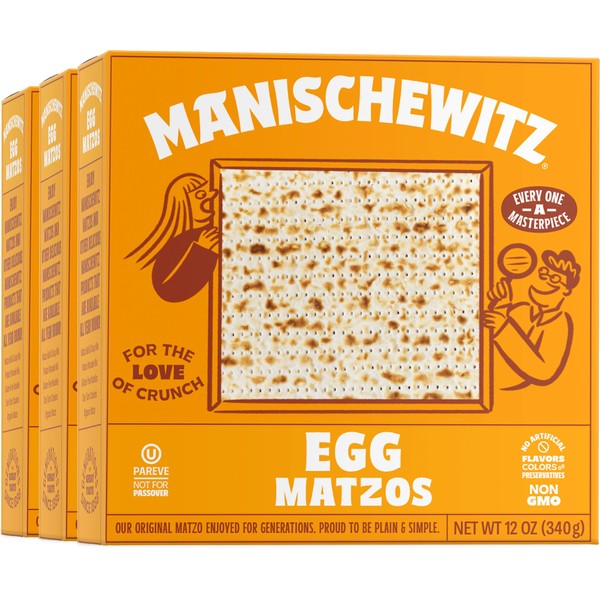 Manishewitz Egg Matzo 12oz (3 Pack) Kosher (Not For Passover), Thin, Crisp & Light Texture, Sodium Free, No Artificial Flavors, Colors or Ingredients,