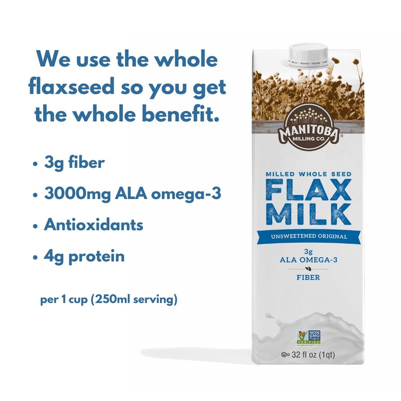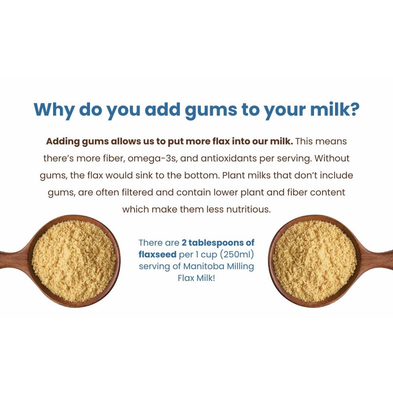- NEVER FILTERED - We never filter our milk. This means it contains every part of the flaxseed. Other plant milk manufacturers may let the nut, seed, or grain soak in water before filtering it. We never do this. In every 1 cup (250ml) serving of Manitoba Milling Flax Milk, there are 2 tablespoons of milled flaxseed and 3g of fiber. This means our milk offers all the nutritional benefits of plain flaxseed but in an exciting and easy-to-use beverage form! We don't add oils or filler ingredients.