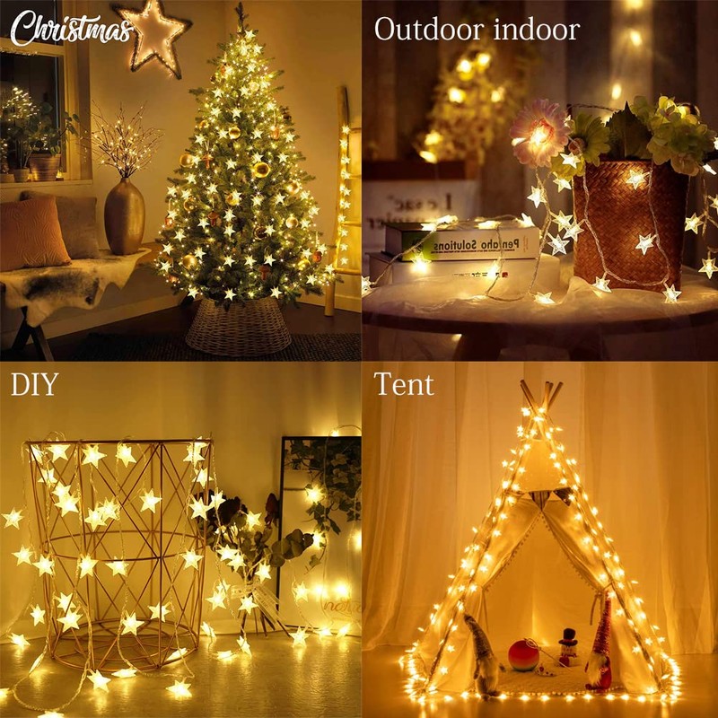- Ampliamente utilizado en interiores y exteriores: esta cadena de luces de estrella blanca cálida es perfecta para interiores y exteriores, árbol de Navidad, fiesta, día de San Valentín, boda, hogar, jardín, balcón, patio, festival, vacaciones, tienda de campaña para niños, decoración de camping.