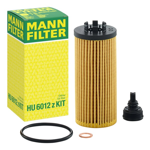 Mann Filter HU 6012 z KIT Cartridge Oil Filter Replacement with Oil Drain Plug Gasket Compatible With BMW 228i Gran Coupe, 228i xDrive Gran Coupe, M235i xDrive Gran Coupe, X1, X2, MINI Cooper