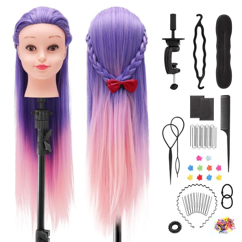 - Cosmetology mannequin head is packed in a beautiful box, comes with a clamp holder, some hair tools and rainbow hair extensions. We are very worried about everything you meet, any question please contact us before complaining, you will receive our best services.