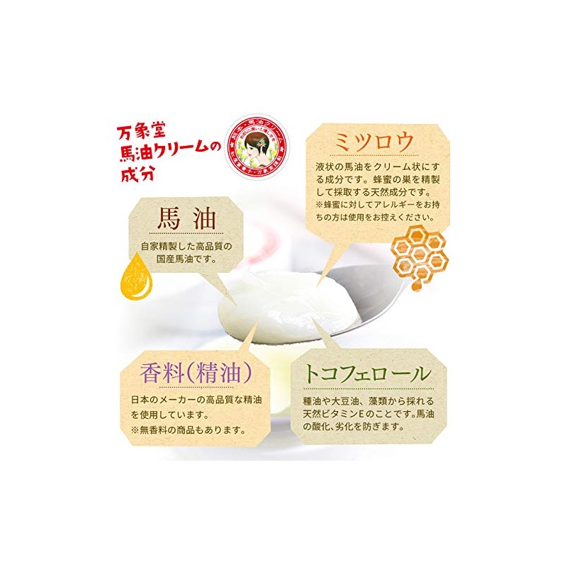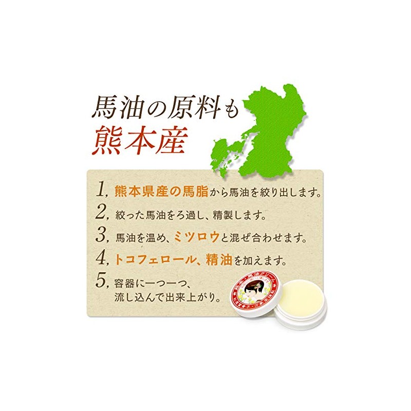 Enjoy a relaxing moment with the scent of a rose. We recommend rose-scented horse oil cream for your skin problems. Horseoil ingredients smoothen your skin. Use for hand cream and skin care. The ingredients are central to natural ingredients, so it is recommended for delicate and sensitive skin. High quality horse oil is kneaded with high quality essential oils from a domestic manufacturer. Your skin and heart will be soothing to your skin. Portable and convenient 30g Feel free to use it at home or when going out. Horse Oil Features: Penetrates to your skin as a massage oil; Moisturizes and retains heat. Use it on the body, face, elbows and heel cream. Made in Japan: (handmade in Kumamoto Asu), Ingredients (horse oil (from Kumamoto Prefecture), Beeswax, Tocopenol, Essential Oil; Contents: 1.1 oz (30 g); Not sold in stores. The label design has been registered trademark. (Registration No. 6133048) [Effects/Effects] There may be individual differences in the product; If it does not fit your skin, please stop using and consult your physician ◆ Total Seller: Moramoto Manshodo, Co., Ltd. Kumamoto Prefecture, Kurokawa 431 Cosmetics Manufacturer and Sale Permit No. 43COX10016