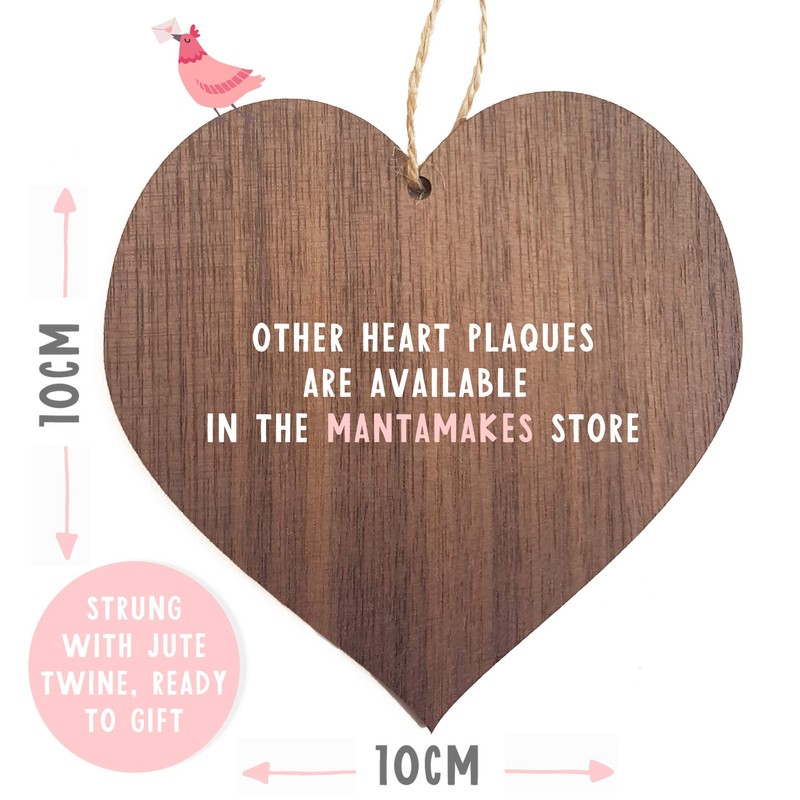 - From our range of motivational plaques and gifts to cheer someone up. This wooden heart plaque is expertly printed on walnut wood and strung with a rustic twine for hanging. The hanging plaques are 10cm by 10cm approx. in size.