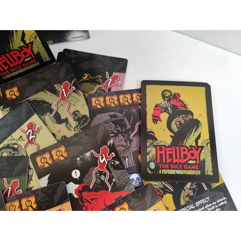 - HELLBOY DICE GAME: Take on the role of a B.P.R.D. recruit exploring a mysterious location. It’s training day for B.P.R.D agents as you battle frog monsters, Rasputin and more in this fun, fast-paced, and fiendish push-your-luck Hellboy game.