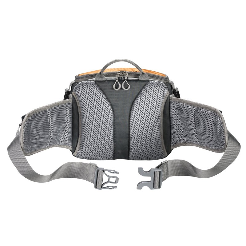 - Outdoor Kameratasche zu tragen per Schultergurt und/oder Bauchgurt, geeignet für eine kleine DSLR Ausrüstung oder eine Systemkamera inkl. Zwei Objektive, Netzteil und weiteres Zubehör