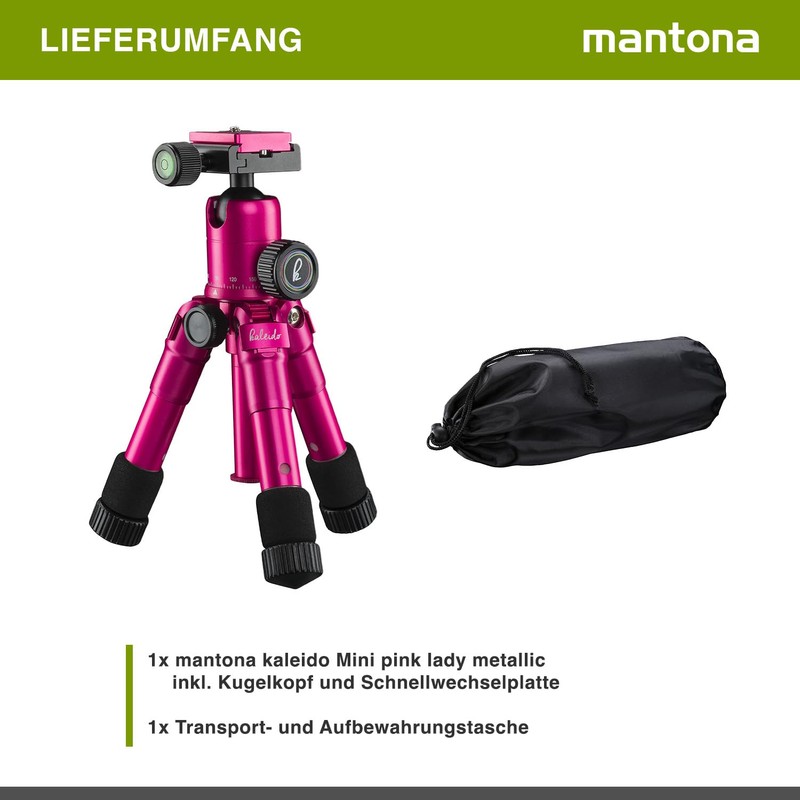 Mantona Kaleido 21185 Mini Photo/Table/Travel Tripod with Ball Head with Quick Release Plate and Carry Case