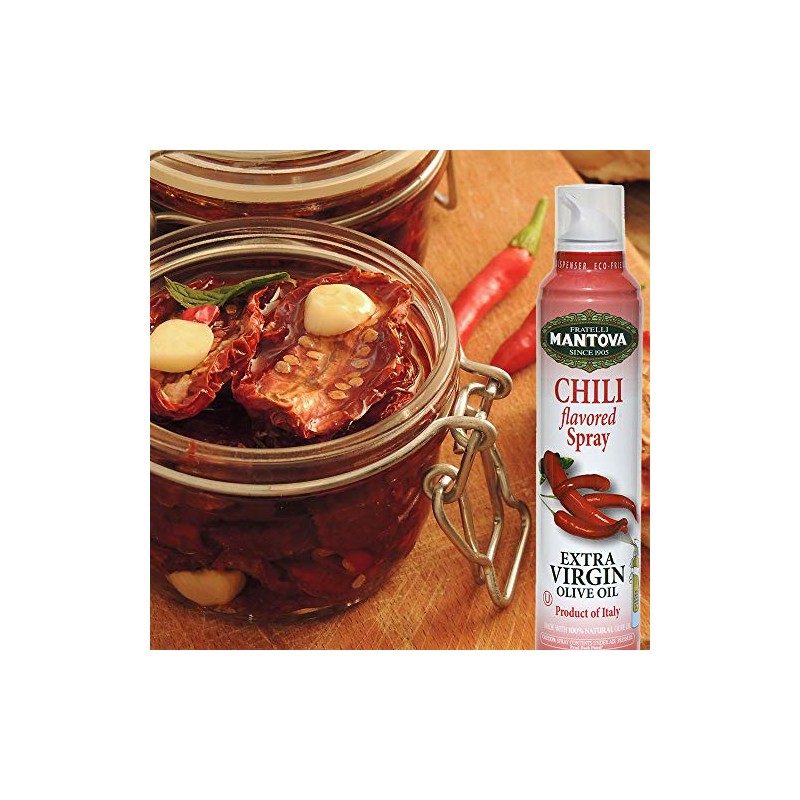 - Made in Italy, our Mantova Chili Flavored Extra Virgin Olive Oil Spray bottle preserves all the genuine qualities of 100% natural Italian EVOO in an olive oil dispenser that lets you spray just the right amount for your dish.