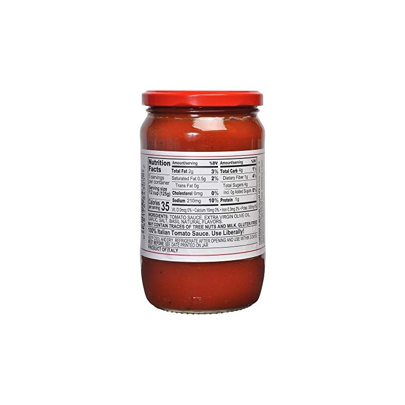 - INGREDIENTS: TOMATO SAUCE, EXTRA VIRGIN OLIVE OIL, GARLIC, SALT, BASIL NATURAL FLAVORS