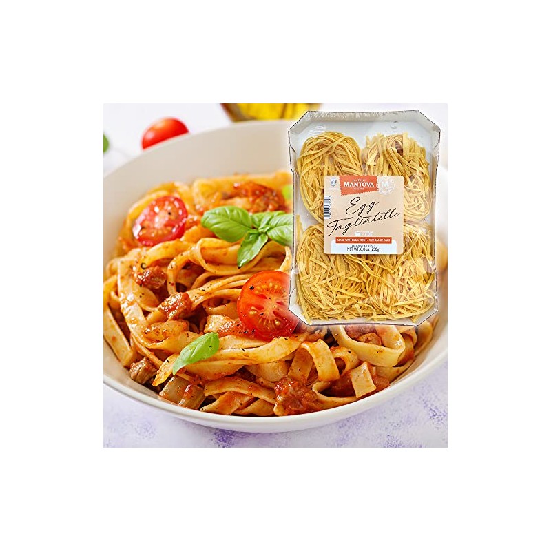 Mantova Tagliatelle Egg Pasta Nest, Made in Italy with Farm fresh - Free range Italian eggs - 33.2% egg, Bronze die, and slow dried dried for premium quality pasta (Pack of 3)