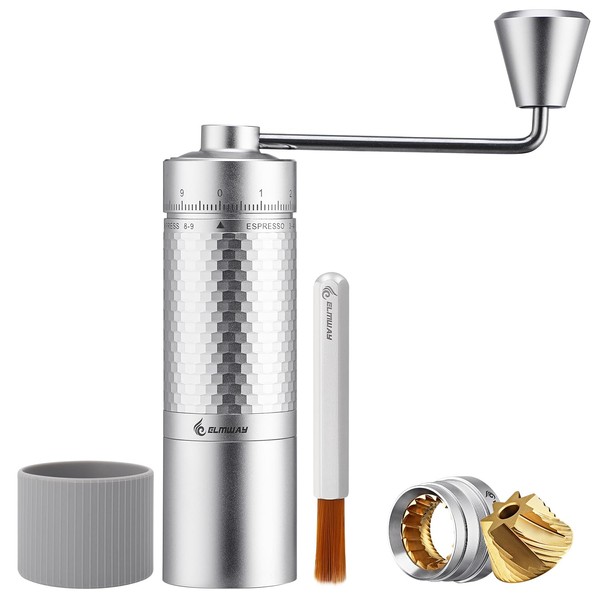 - RECISION 7-STAR BURR:Experience precision grinding with our manual coffee grinder, equipped with a CNC precision-cut titanium-plated 7-star 440 stainless steel burr. This design guarantees uniform coffee powder at rapid speeds, catering to espresso, pour-over, and French press needs, while excelling in producing extra-fine powder tailored to your preferences.