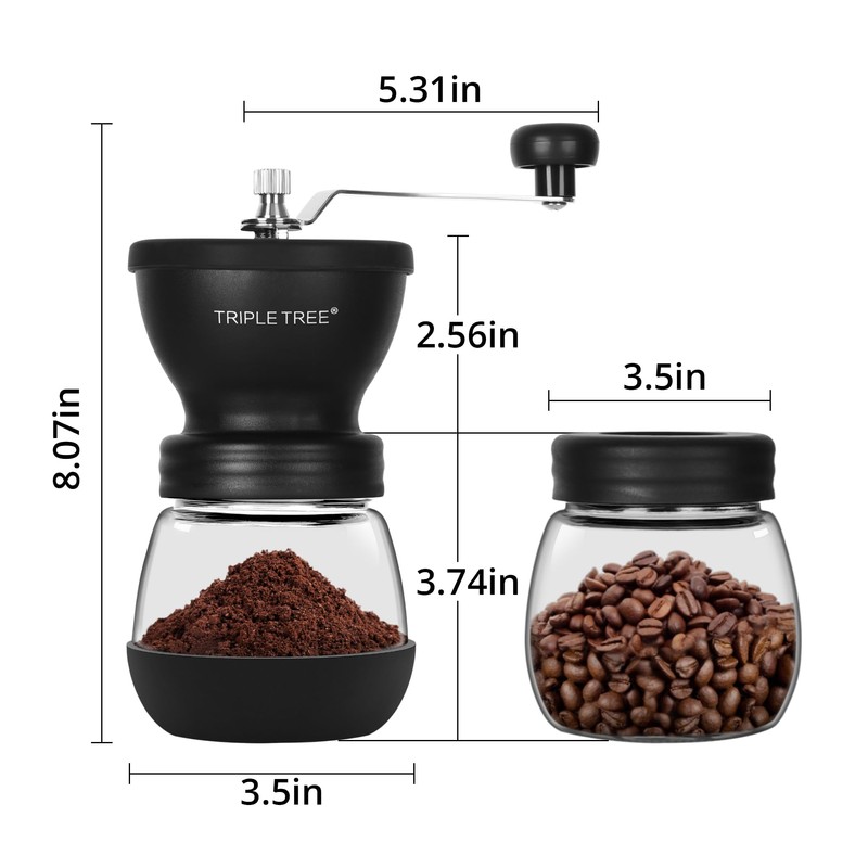 • Convenient and Practical: Silicon lid is soft to touch and convenient to add beans. Manual coffee grinder comes with 2 clear glass jars, convenient to keep powders or beans and both the brush and scoop which can help you enjoy the brew anywhere