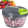 - 👍Save time: About 2 cups is enough for your kitchen needs.When you pull on the string, the blade rotates quickly to cut the dish into the shape you want. Pull it about 5 times,It's going to take about 5 seconds,It's a rough cut. 10 to 15 is a fine cut that takes 10 seconds. More than 15 times can be used for dipping. Very fast and saves time.