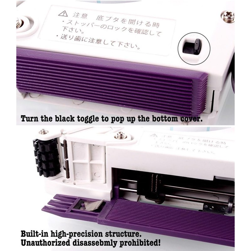 - Open the Bottom Cover: Push the black button to the left to open the bottom cover.