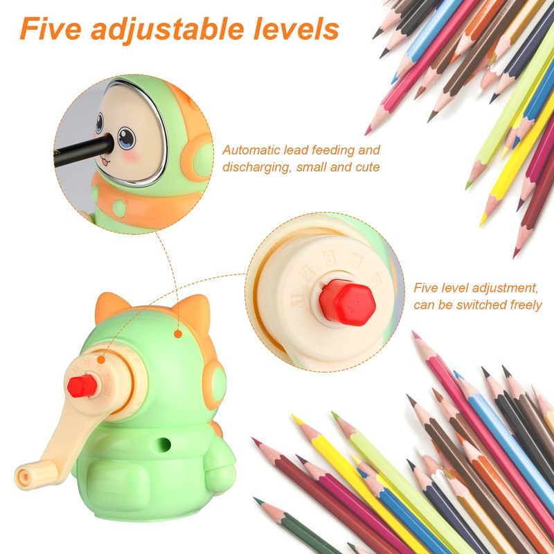 - Adorable / Adjustable Design - Featuring a charming, kid-friendly aesthetic with vibrant colors, this sharpener includes a 5-grade adjustable mechanism to fit various pencil sizes (standard to jumbo). Its playful design sparks joy and suits children aged 5+, making it a perfect companion for creative little hands.