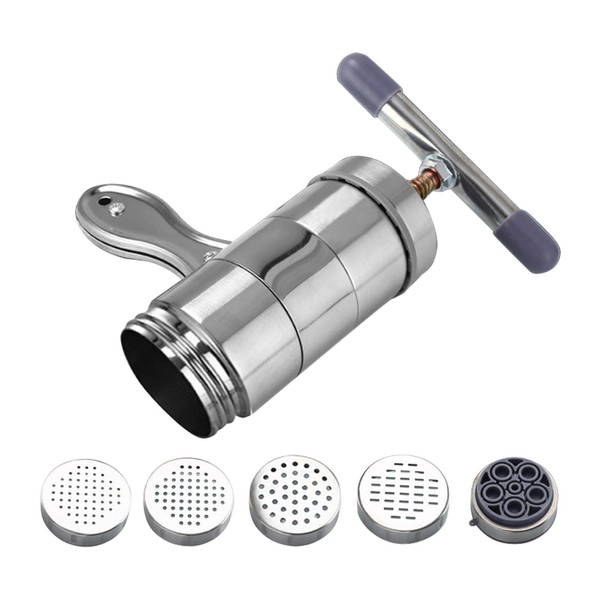 Manual Press Pasta Machine Stainless Steel Hand Wringing Noodles Making Machine with 5 Noodle Mould