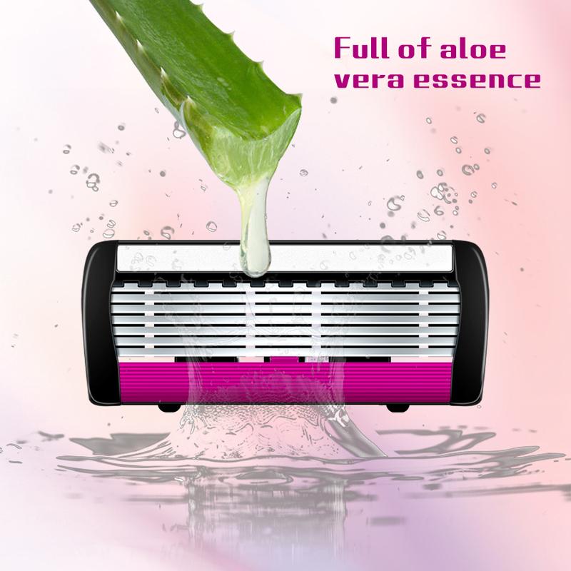 Our 7-Blade Manual Razor features a sleek white handle with a unique design—a red-winged angel symbolizing both style and precision. Equipped with 24 ultra-sharp 7-layer blades and dual-layer magenta and white lubrication strips, this razor ensures a smooth, irritation-free shave every time.