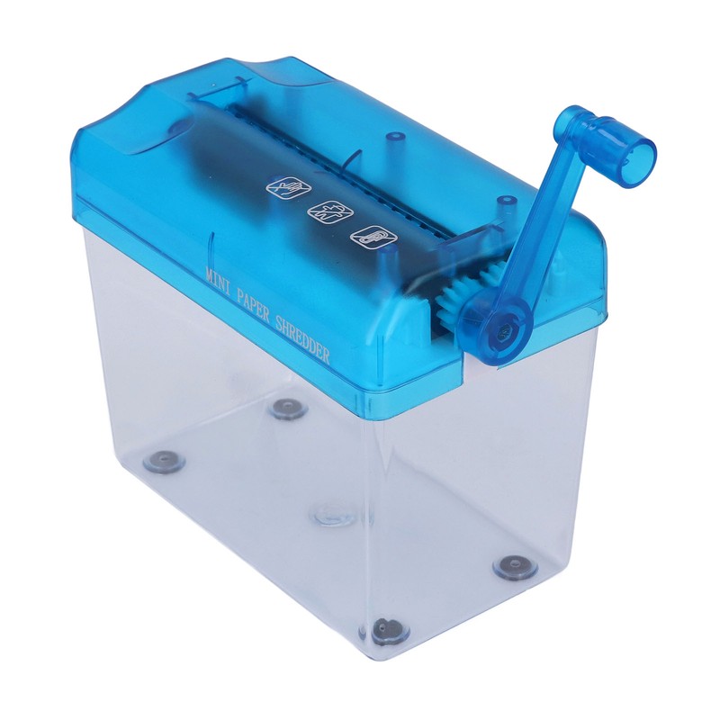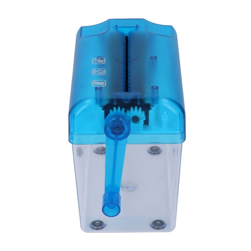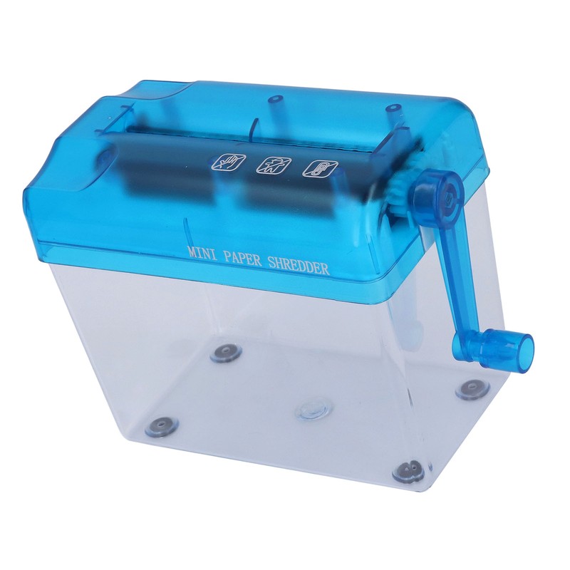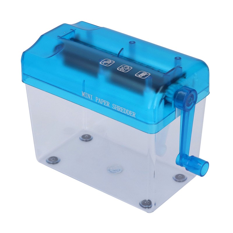 1、PAPER SHREDDING: The entry width of this manual shredder is 123mm, and the torn paper width is 3mm. It can shred paper, receipts, and important files, maximizing the security of your information. 2、APPLICABLE SCENARIO: This manual shredder is compact and lightweight, and can be easily placed on shelves, tables, or small places, occupying very little space. Suitable for office, school, or home use. 3、EASY TO OPERATE: This shredder is equipped with a handle, which can quickly shred an A6 paper by simply turning it by hand. It does not require power supply, has low operating noise, safe and convenient to use. 4、COMPACT DESIGN: This hand shredder features a strip cut design, allowing you to quickly dispose of useless paper. The compact and lightweight design is very suitable for both adults and kids to operate. 5、BOX AND BOTTOM MAT: This shredder has a 1L plastic box with a transparent design for easy observation of the interior. Simply remove the lid to empty it. The bottom 4 non slip pads ensure stable placement.