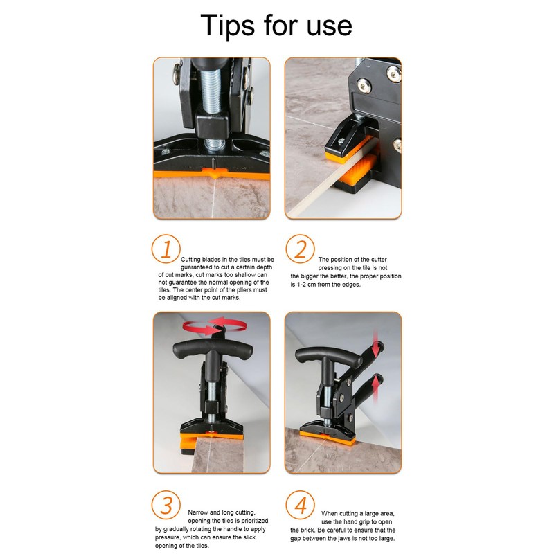 - Adjustable Pressure Mechanism: If you're struggling to open a tile due to tight grips, simply rotate the tightener on the handle to apply pressure to the tile. This innovative feature lends itself to a slick and comfortable user experience, reducing fatigue during extended use.