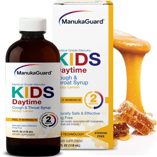 - KIDS DAYTIME MANUKA HONEY THROAT SYRUP: Soothe your child's dry throat naturally with ManukaGuard Kids Daytime Throat Syrup, featuring MGO 400 Medical Grade Manuka honey and a proprietary blend of botanical ingredients.