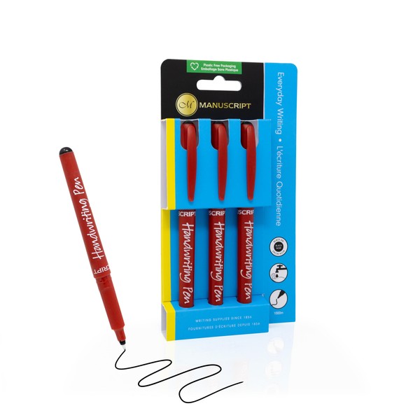 - 3 Manuscript black Handwriting Pens for everyday writing. A best selling product due to its quality design and reliablity.