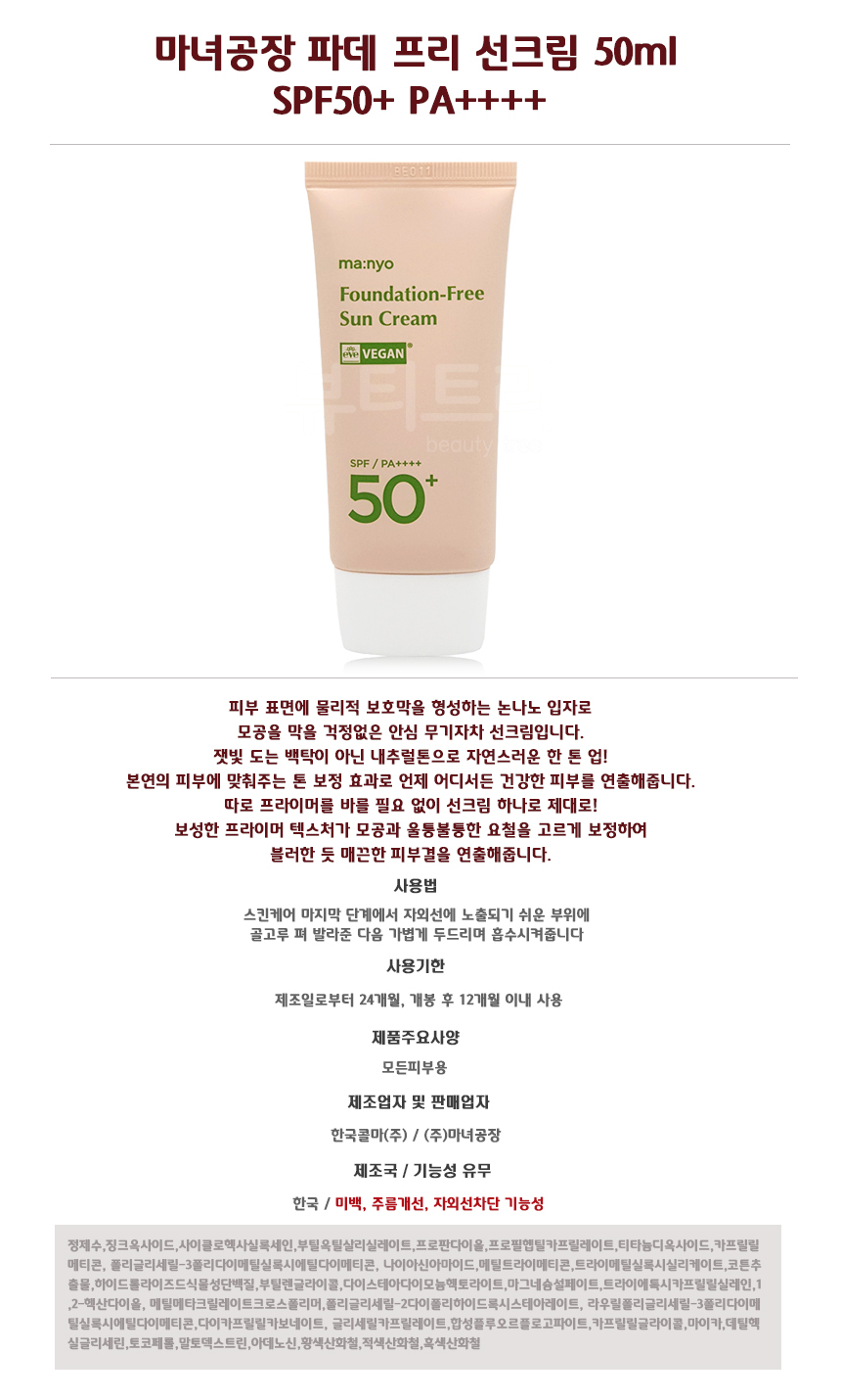 Manyo Factory Foundation-Free Sunscreen 50ml / 마녀공장 파데 프리 선크림 50ml