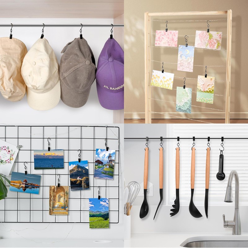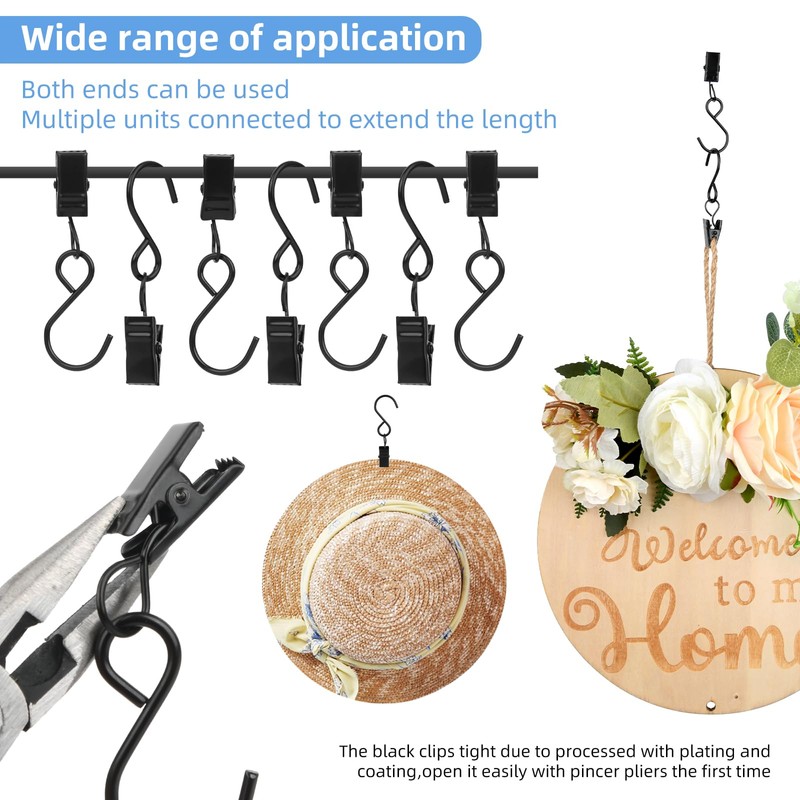 - STRONG GRIPPING POWER:The Stainless Steel S Hook Clips have strong clamping power, no worry about hanging items falling off. Widely application for awnings, canopies, tents, motorhome, kitchens, bathrooms, restaurant, patios, gardens, garages, gazebos, campsites, offices, family gatherings, holiday celebrations etc.