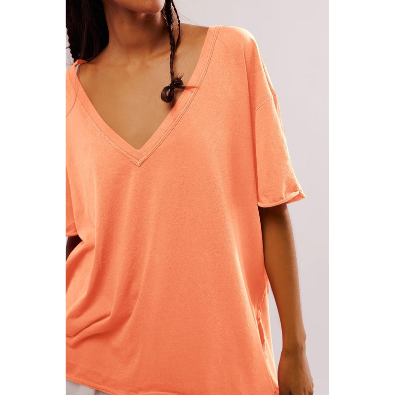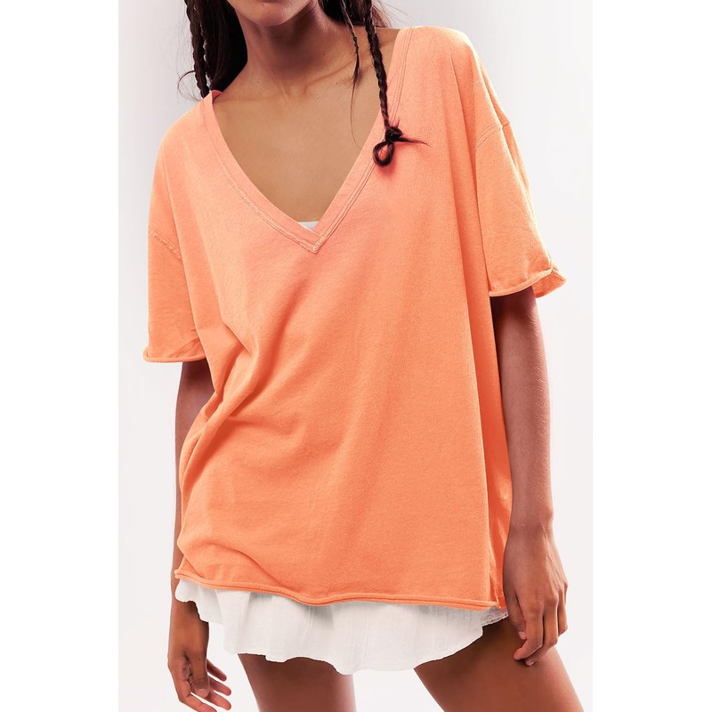 MAOECO Womens Oversized T Shirts Loose Fit V Neck Short Sleeve Tops Summer Casual Blouse Trendy 2025 Basic Tee Orange