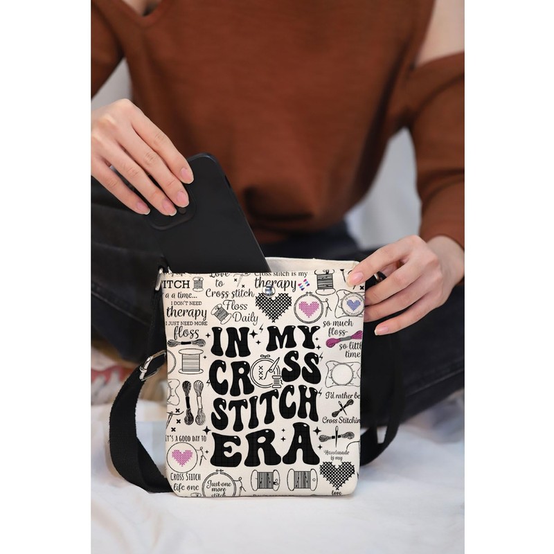 MAOFAED Cross Stitch Gift, Sewing Gift, In My Cross Stitch Era Crossbody Bag for Women, Taking Life One Stitch At A Time (crossstitch eraCA)