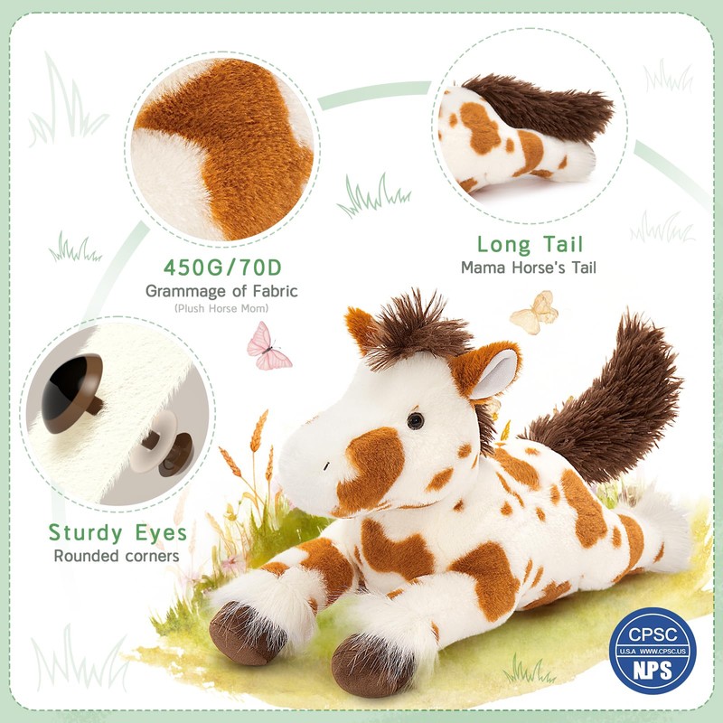 - Decor Gift: Motley horse stuffed animal plush is an ideal decoration for room, nursery,party and attractive present for baby,on birthday, baby shower, Children's Day, Christmas and Easter. Stuffed horse plush toy will be your favorite animal toy, the fluffy animal plush toy for bedding