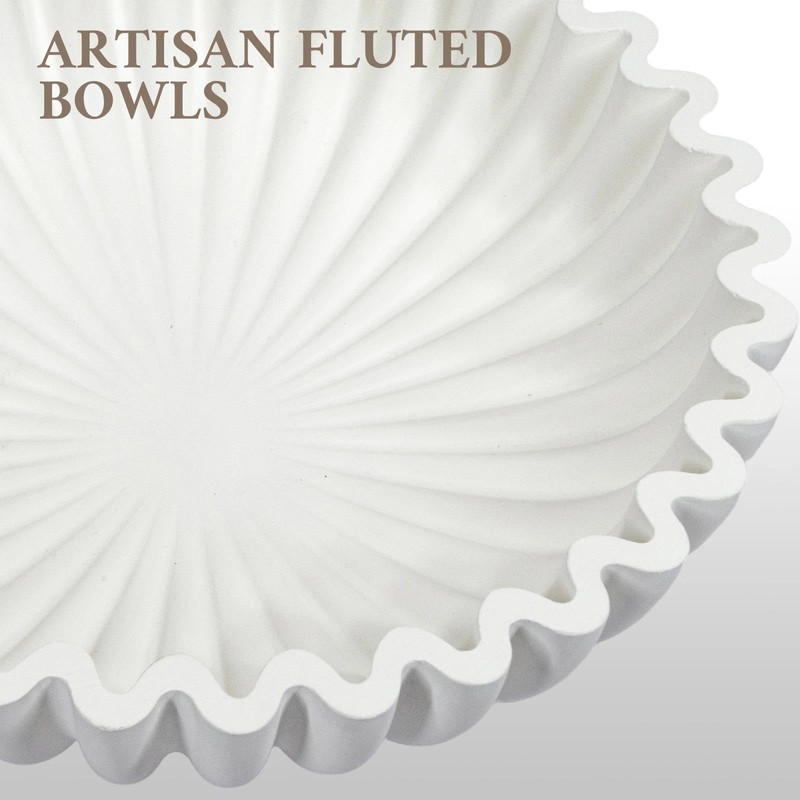 MAONAME Concrete Decorative Bowl, White Fruit Bowl for Kitchen Counter, Modern Handicraft Coffee Table Key Bowl, Large Scalloped Ruffle Bowl for Entryway, Home Decor