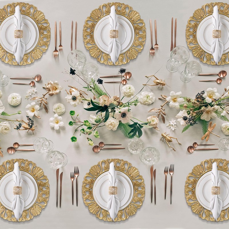 - TABLE SETTING: Charger plates set of 6' distinguished design enhances the overall look of your catering theme, making the charger plates set a top choice for weddings, receptions, parties, banquets and any special events.