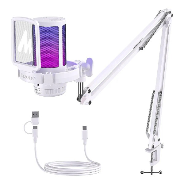 Maono Micrófono Gamer Rgb Condensador Usb Para Pc,dgm20s Color Blanco