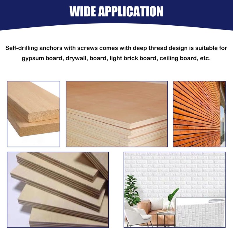 The drywall anchors be suitable for gypsum board, drywall, plasterboard, etc.