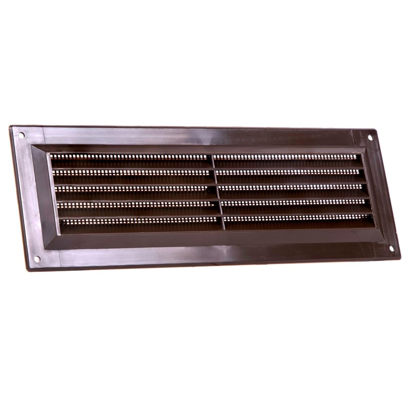 Map Louvre Vent Cover 9 x 3 (229mm x 76mm), Fixed Plastic Grille with Flyscreen to Cover Single Brick, Brown