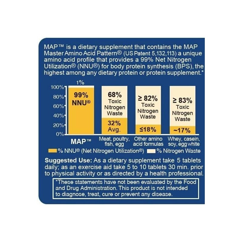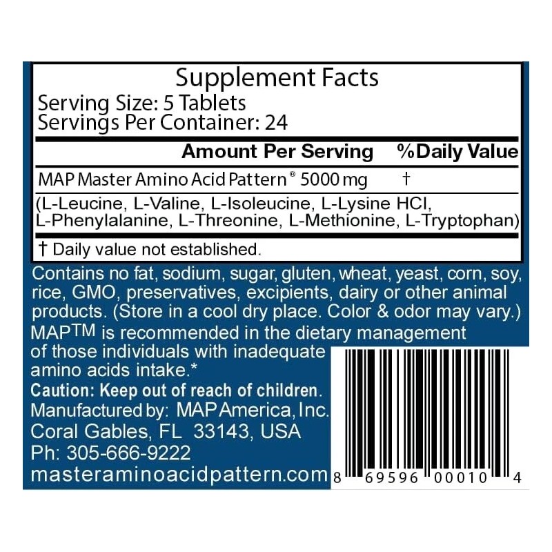 MAP Master Amino Acids Pattern 1000mg Dietary Supplement 120 Tablets, 30 Serving